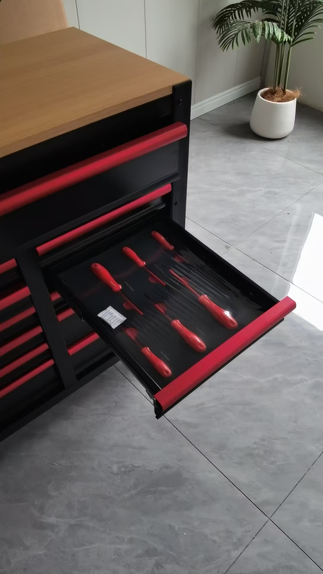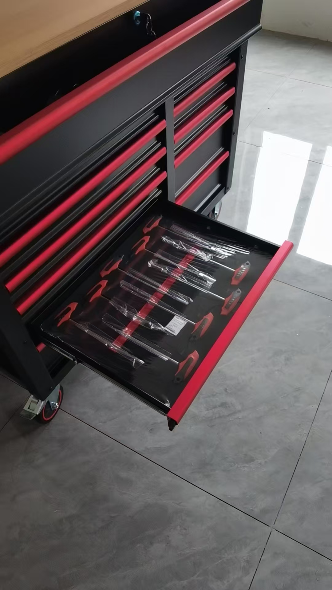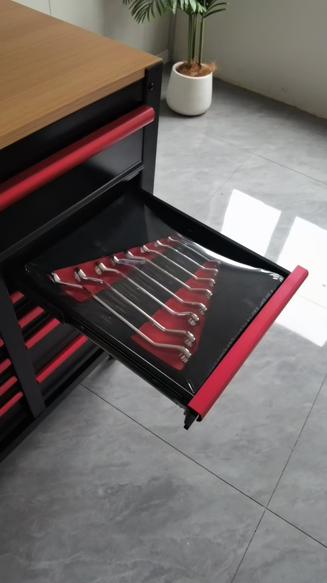 This multi-zone layout makes tool sorting easier and provides optimized accessibility for various tool sizes. Ideal for workshops needing large storage capacity, professional-grade durability, and exceptional workflow organization.