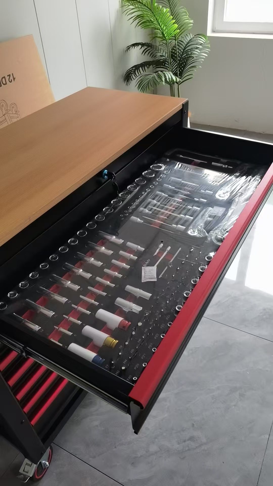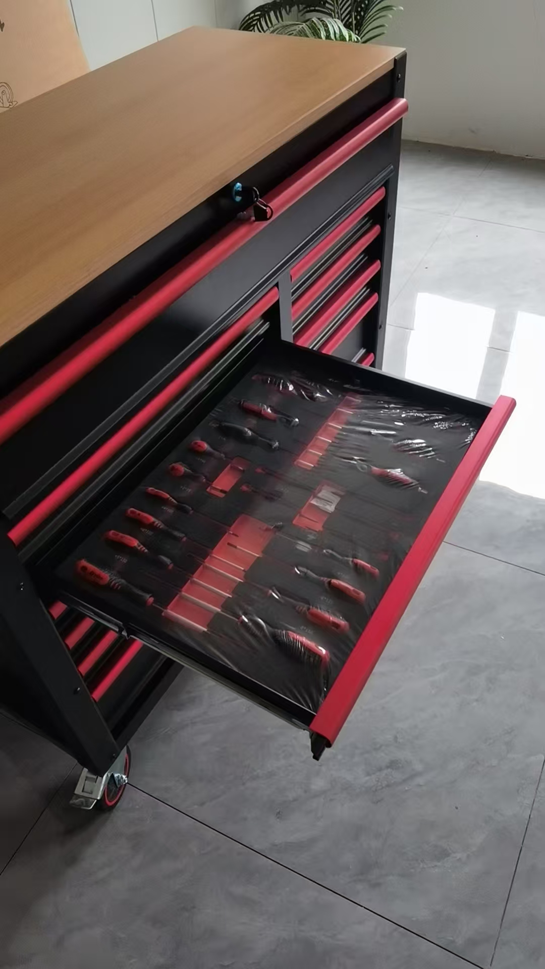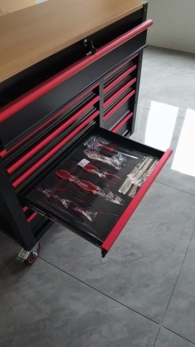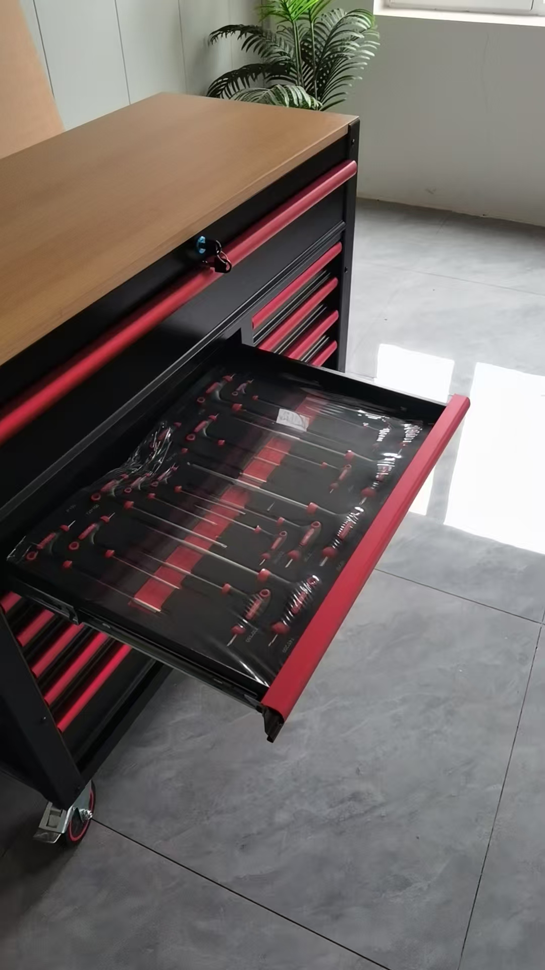 This multi-zone layout makes tool sorting easier and provides optimized accessibility for various tool sizes. Ideal for workshops needing large storage capacity, professional-grade durability, and exceptional workflow organization.